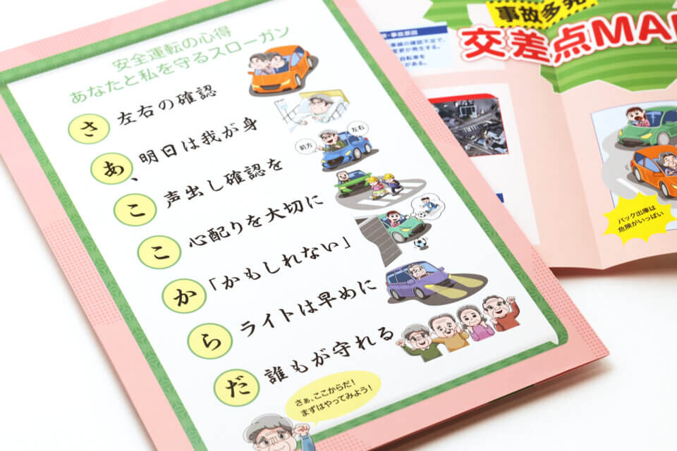 素敵なチラシができたので、まずは南九州エリアの自動車教習所に設置する予定です。今回は高齢者向けでしたが、今後はお子さん向けの通学路の安全対策など、ターゲットや課題に合わせた展開もできると考えています。
